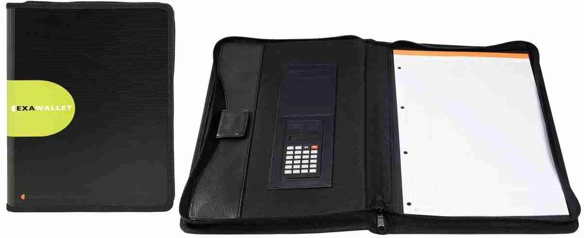De Exawallet conferentiemap heeft een ingebouwde rekenmachine, zodat u snel en nauwkeurig berekeningen kunt maken tijdens uw vergaderingen. Het compacte, stijlvolle ontwerp heeft ook pennenvakken, documentvakken en visitekaartvakjes, zodat u georganiseerd en professioneel blijft.