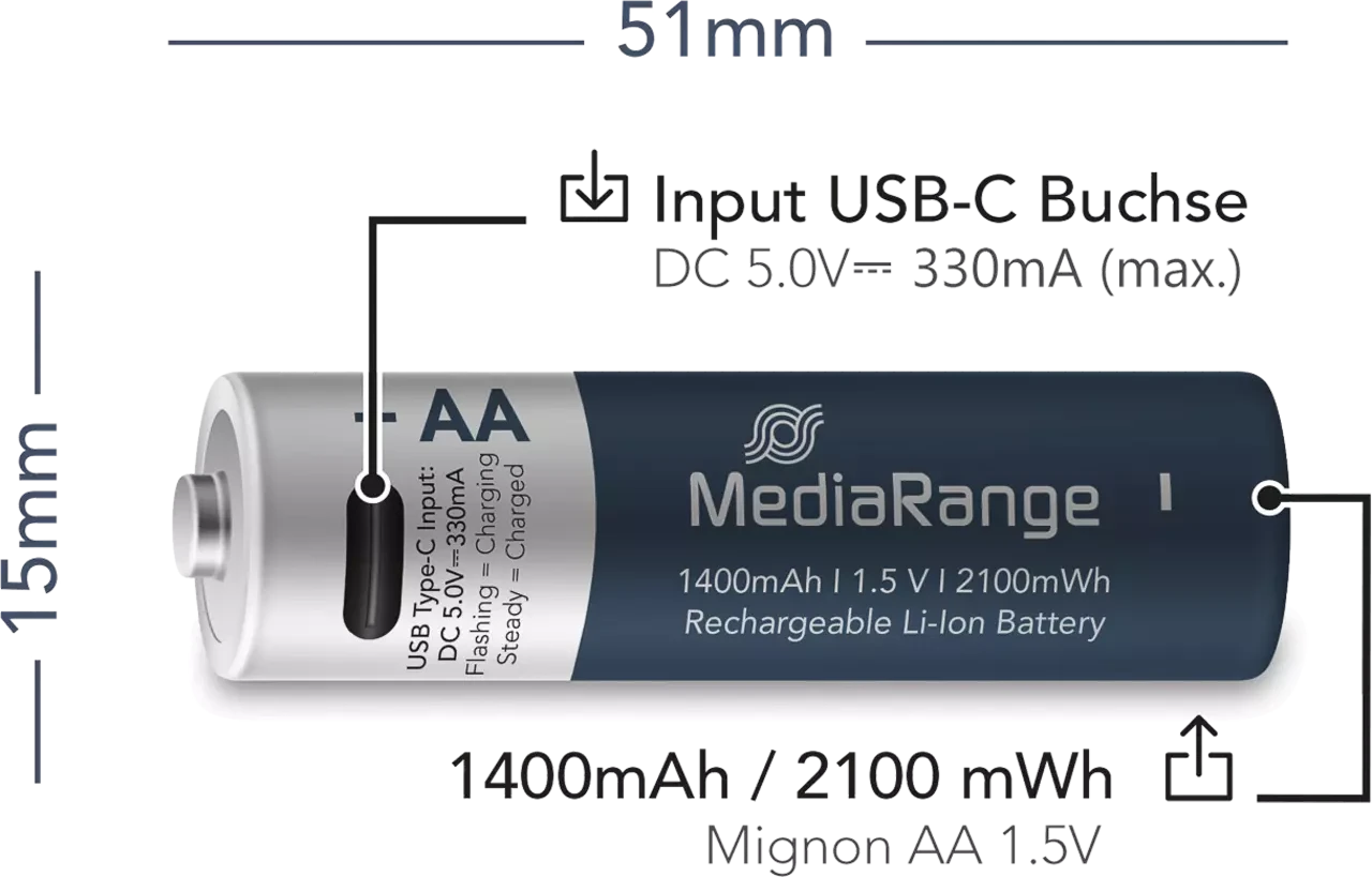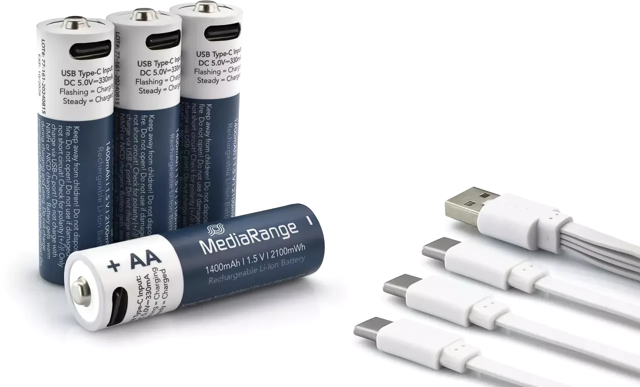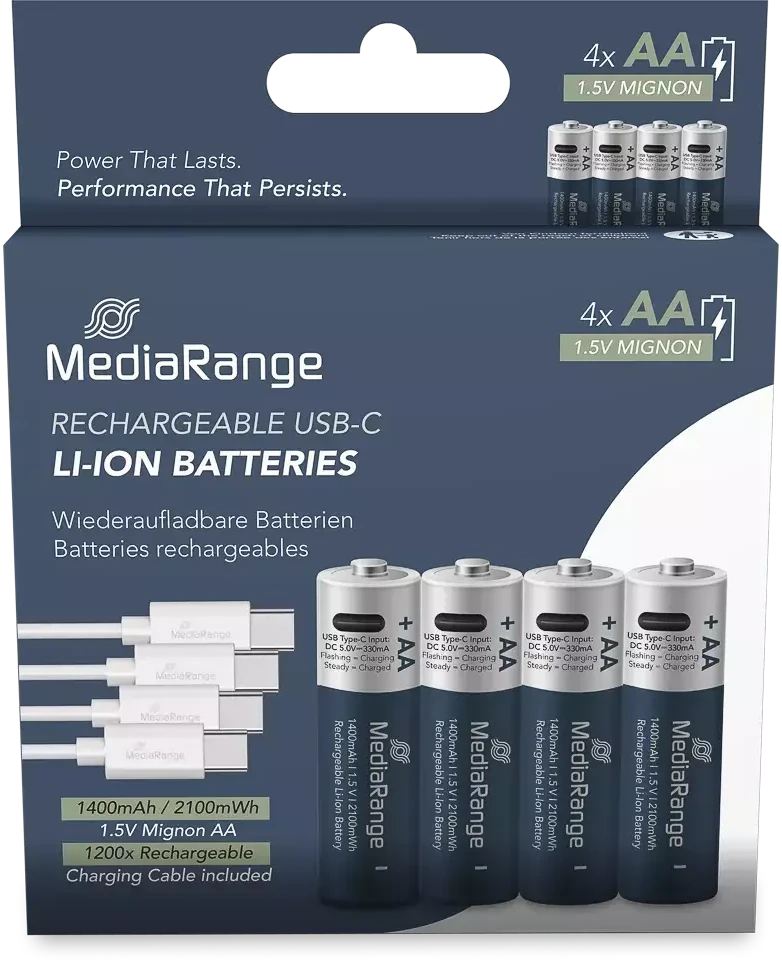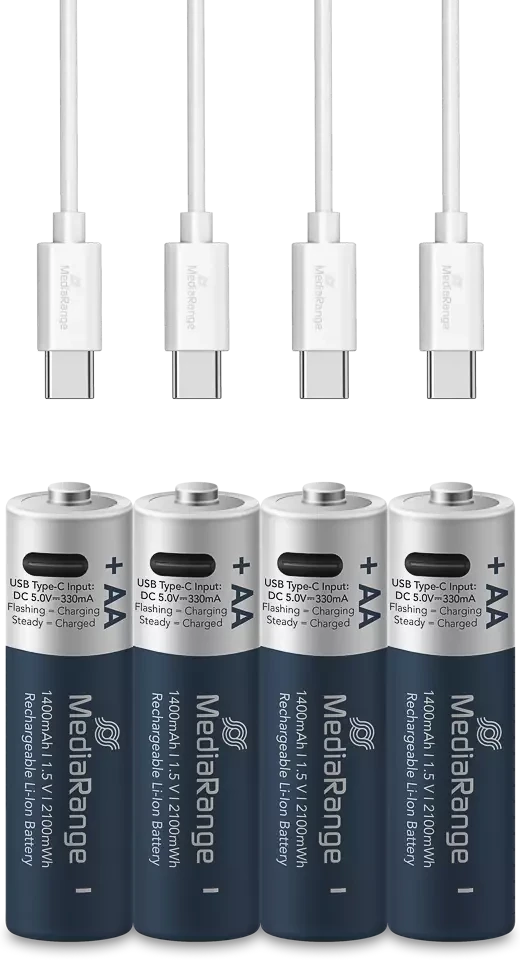 Mediarange USB-C oplaadbare Li-Ion AA-batterijen