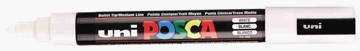 Ontdek de Posca PC-5M white marker, het essentiële gereedschap voor het toevoegen van heldere, precieze details aan je artistieke creaties. Met deze 2,5mm medium-tip marker kun je nette, gecontroleerde lijnen tekenen op een verscheidenheid aan oppervlakken, van papier tot hout en metaal. De helderwitte kleur van de Posca PC-5M creëert een opvallend contrast tegen donkere achtergronden en voegt een uniek lichteffect toe aan je illustraties, tekeningen en kunstprojecten. De hoogwaardige inkt op waterbasis droogt snel, is lichtecht en geeft een perfecte dekking.