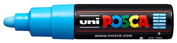 Ontdek de lichtblauwe Posca PC-7M marker, het essentiële gereedschap om heldere, precieze details toe te voegen aan je artistieke creaties.
