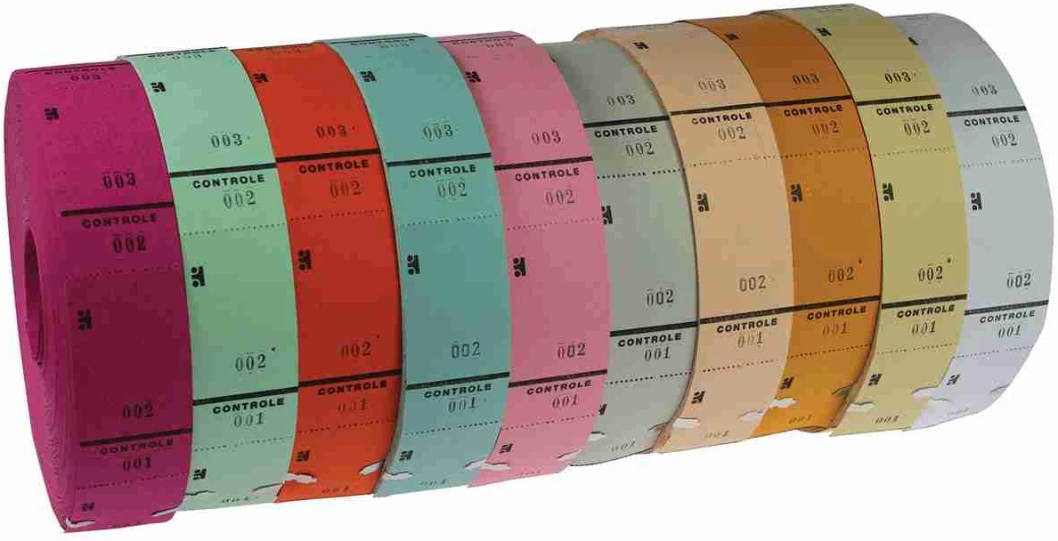1-1000 Rol van 1.000 biljetten, formaat 65 x 30 mm, met controlestrookje. Genummerd per rol van 1 tot 1.000. per eenheid