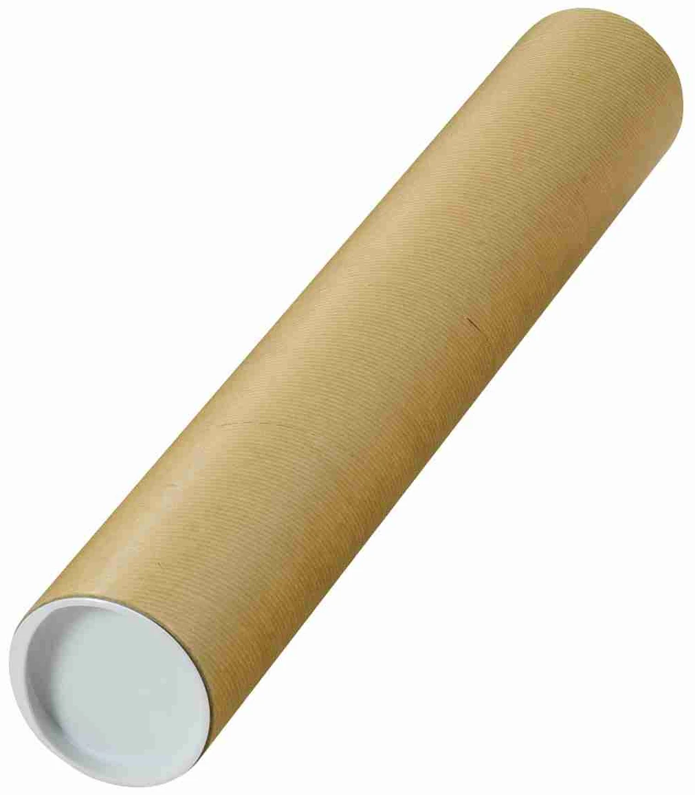 Verzendkoker met witte afsluitdoppen. Kleur: bruin.