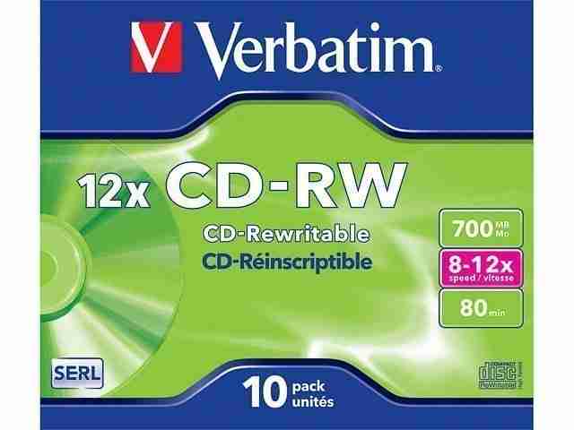 De doos met 10 herschrijfbare CD-RW-cd's van Verbatim biedt een royale opslagcapaciteit en universele compatibiliteit met veelgebruikte cd-spelers en -branders. Brand en herschrijf je gegevens zo vaak als je wilt, of het nu gaat om documenten, foto's, video's of muziek.