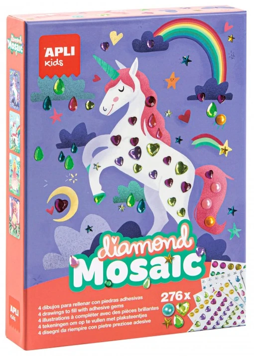 Ce jeu complet contient : 4 feuilles de carton illustrées, 276 diamants de couleur et 1 guide.