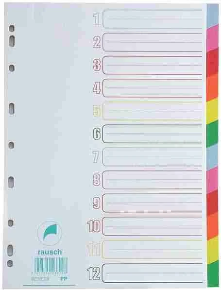 238193 INTERCALAIRE RAUSCH polypropylène 12 onglets en couleur assorties