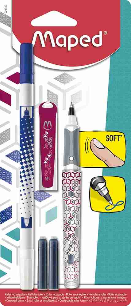 Largeur de trait: 0,9 mm, pointe moyenne. Grip douce triangulaire pour le meilleur confort. Avec 2 recharges et un effaceur d’encre. En couleur rouge Sur blister.