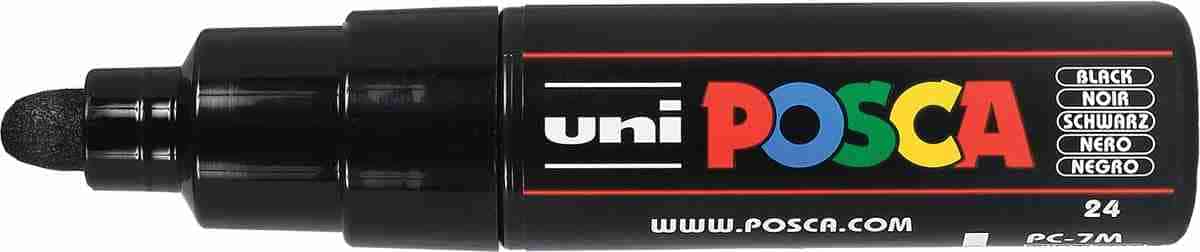 Créez, concevez et dessinez sur n’importe quelle surface avec le marqueur peinture POSCA PC-7M noir. Sa pointe large conique de 4,5 à 5,5 mm permet tout autant un remplissage précis qu’un travail de précision à grande échelle, parfait pour les créations grand format. Ce marqueur peinture est inodore, fabriqué à base d’eau et convient à tous les supports (intérieur et extérieur).
