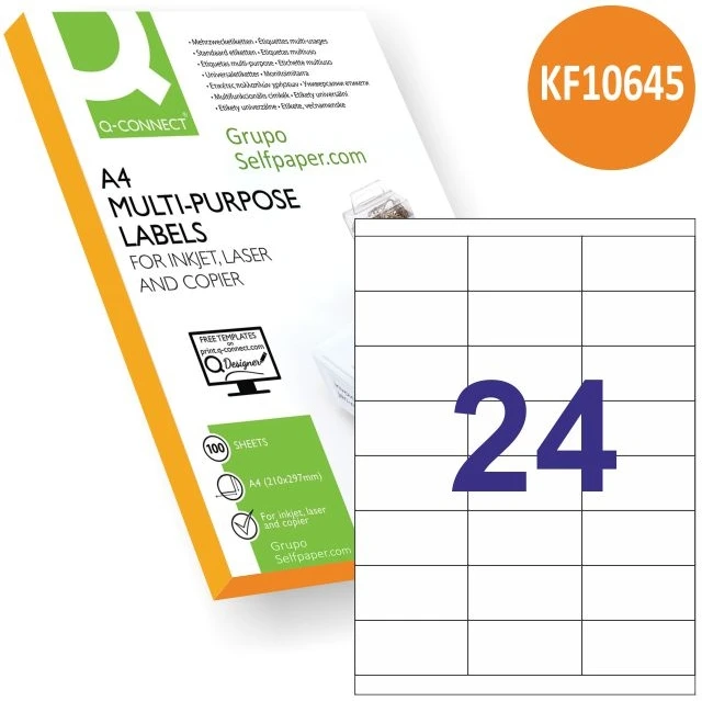 Q-CONNECT étiquettes, blanc, coins carrés, 70 x 35 mm, 100 feuilles, 24 étiquettes par feuille