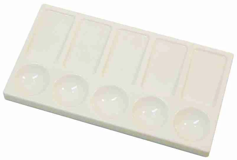 66P Palette plastique rectangulaire comportant 5 alvéoles rondes et 5 alvéoles rectangulaires. Format 10,5 x 19,5 cm.